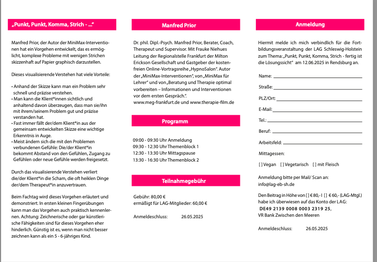wir freuen uns sehr, Sie im Namen der Landesarbeitsgemeinschaft für Erziehungsberatung in Schleswig-Holstein zu folgender Fortbildungsveranstaltung einzuladen: